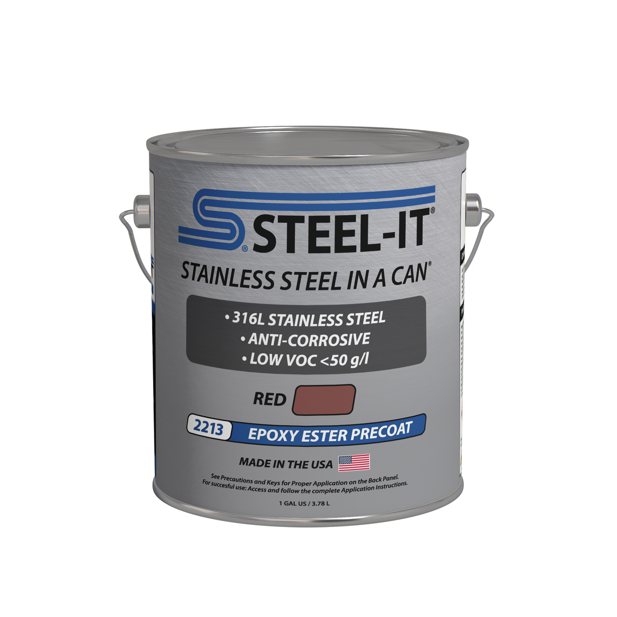 The Epoxy Ester Precoat 2213 is intended for use with a Polyurethane Topcoat. The one-component undercoat 2213 offers improved durability and protection when used together with a STEEL-IT polyurethane topcoat. As the direct weldability of the polyurethane topcoat is affected by the use of the undercoat, the use of undercoat 2213 is only recommended for applications where weldability is not a priority. Coverage yield: 4.1 m2/L Recommended dry film thickness: 75 µm To obtain a dry film thickness of 75 µm, a wet film thickness of 205 µm must be applied.